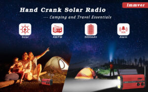 Immver Wind Up Solar Radio, 5000mAh Hand Crank Dynamo Radio Rechargeable, Portable Emergency AM/FM Radio, with 4 Modes LED Torch, Reading Lamp, USB Phone Charger, SOS Alarm, for Camping Hiking (Red)