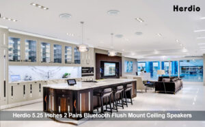 Herdio 5.25 Inche Bluetooth Ceiling Speakers, 600 Watts Flush Mount Stereo Sound Speakers, For Living Room, Bedroom, Bathroom, Home Theater, Covered Porches ​(4 Speakers)