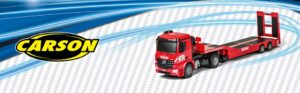 Carson 500907307 Mercedes-Benz 1:20 MB Arocs Goldhofer 2.4G 100% RTR, Construction Vehicle with Light and Sound Functions, Includes Batteries and Remote Control, Red