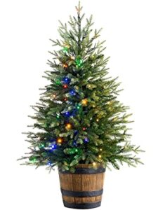 WeRChristmas Pre-Lit Potted Pine Christmas Tree with Dual LED Lights, Green, 4 feet/1.2m