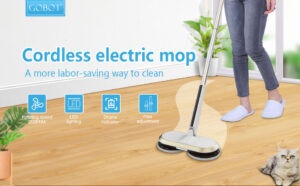 GOBOT cordless electric mop floor scrubber kitchen hardwood floor cleaner, replaceable microfiber mat and front LED light with adjustable handle, laminate floor, ceramic tile, vinyl floo