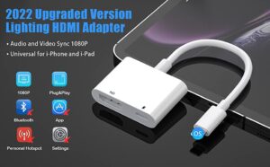 HDMI Adapter for i-Phone i-Pad, 1080P Ligting to Digital AV Adapter, Lighting HDMI Adapter for TV/Monitor/Projector, i-Pad/i-Phone to tv for i-Phone/Pad/Pod Touch, Upgraded 10s Connection, Plug& Play