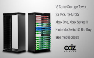 Universal Game Storage Tower – Stores 18 Game or Blu-Ray Disks – Game Holder Rack for PS4, PS5, Xbox One, Xbox Series X/S, Nintendo Switch Games and Blu-Ray Disks
