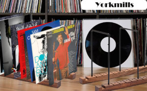 Yorkmills Vinyl Record Storage, Display Up to 50 LP Albums DVDs CDs, Solid Wood Vinyl Holder with Stainless-Steel lp Storage Boxes shelf Stand Case, Record Stand for Modern Home Office Desktop Deco