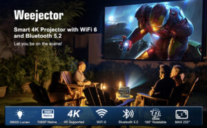 4K Projector, 26000 Lumen Native 1080P Portable Smart
