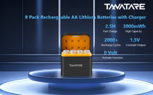Tanatare Rechargeable AA Lithium Batteries 8 Pack with Fast Charger,1.5V Constant Output 3000mWh Low Self Discharge AA Li-ion Battery