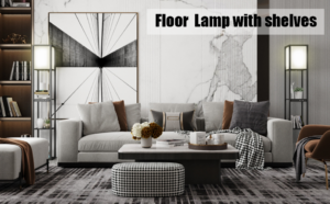Floor Lamp with Shelves, 3 Color Temperature, 3 Layers Pull Chain Shelf Floor Lamps by Real Solid Wood with 2 USB Charging Ports, Floor Lamps for Living Room, Lamps for Bedrooms, Matt Black
