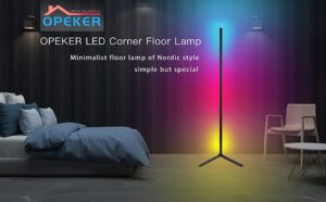 Mood Light, 65″/165cm RGB Lights with Music Sync, Color Changing LED Corner Floor Lamp for Bedroom, Gaming Lights with Metal, Black