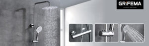 GRIFEMA COLUMNAS-G7003 Round Exposed Thermostatic Shower Mixer 2-Way Bar Mixer Shower Set with Valve 200mm Square Stainless Steel Head + Handheld Shower, 1/2 Inch Hose Pipe, Chrome [Energy Class A+]