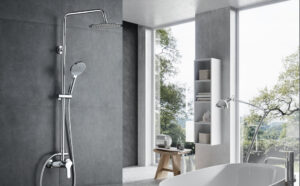 GRIFEMA COLUMNAS-G7004 Exposed Single-Lever Shower Mixer Tap System with Diverter and Kit, 1/2 Inch Hose Pipe, Chrome [Energy Class A++]