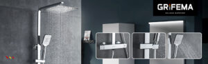 GRIFEMA G7001 Edithedge, Square Thermostatic Shower Set System with 25*25 cm Rain Overhead Shower, Exposed Shower Column, Chrome [Energy Class A+]