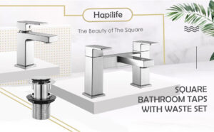 [Basin Tap and Bath Tap] Hapilife Modern Monobloc Bathroom Sink Mixer Faucet and Tub Filler Tap Chrome with Pop Up Waste