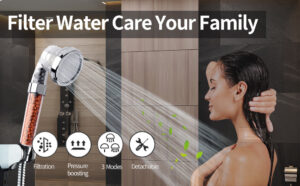 VEHHE Shower Head Powerful Flow with Beads Filter Pressure Boosting Shower Head Spray with 3 Modes Water Saving Bathing for Adults Children Pets Home and Gym Use (White)…