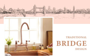 Traditional Kitchen Sink Bridge Mixer Tap Dual White Handle Monobloc 2 Hole Tap Swivel Spout Rose Gold