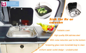 DALUOBO Single Bowl RV Hand Wash Rectangular Basin Sink with Lid for Fit for Compatible with RV Caravan Camper Kitchen Stainless Steel Sink 16.5” x 14.3” x 6.3” (with faucet U)