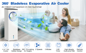 Signature S40004N 4-in-1 Air Cooler with 7.5 Hours Timer and Remote Control Cool yourself, warm yourself, treat yourself! The Signature 4-in-1 Air Cooler and Heater, 3 Airflow Settings gives you the best of all worlds. 4-in-1 System The 4-in-1 system functions as a cooler, heater, air purifier and humidifier at the touch of a button. Ideal for your home or office, this oscillating air cooler and heater provides easy to use digital controls and a 24 hour timer for convenience. 3 Airflow Settings With 3 air flow settings normal, nature and sleep, you can take full control of your environment. Two power heating options and three fan selections are also on hand to ensure your home is kept at the perfect temperature, whilst a water pump circulation system purifies and sterilises the air. Remote Control for Convenience Control the temperature from the comfort of your chair with the remote control with soft touch control panel system for ease and convenience. The air cooler and heater also includes versatile castors for easy portability around your home or office. 7.5 Hours Time Function 6.5L Water Tank Enhance Cooling Ice Blocks Easy Glide Castors Check Offer Price Weight: 7.85 kg Dimensions: 33 x 28.5 x 67 cm; 7.85 Kilograms Model: S40004N Part: S40004N Colour: Mint Pack Quantity: 1 Batteries Required: No Batteries Included: No Manufacture: Signature Colour: Mint Quantity: 1