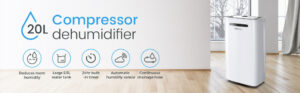 Pro Breeze® 20L/Day Dehumidifier with Digital Humidity Display, Sleep Mode, Continuous Drainage, Laundry Drying and 24 Hour Timer – Ideal for Damp and Condensatio