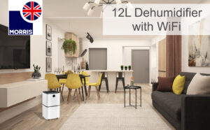 Morris 12L Dehumidifier with WIFI Smart App Function For Mould and Moisture Extraction, Continuous Drainage, Timer, Auto Defrost, Quiet 36dB with Wheels