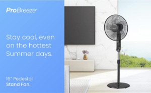 Pro Breeze® 16-Inch Pedestal Fan with Remote Control and LED Display – 4 Operational Modes – 80° Oscillation – Adjustable Height & Pivoting Fan Head – Perfect for Homes, Offices and Bedrooms – Black