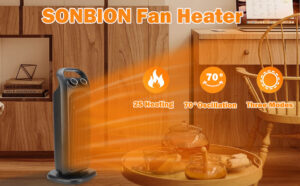 SONBION Electric Heater, Fan Heater with 2 Modes, 2000W Ceramic Space Heaters for Home Office Garage Apartment, 70° Oscillation Heaters for Room Low Energy Silent, Tip-Over and Overheat Protectio
