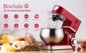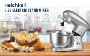 Heichkell Stand Mixer, Food Mixers for baking with 6.2L bowl, 1400W Electric Kitchen Mixers with Dough Hook,whisk & Beater, Dishwasher Safe (6.2L Silver))
