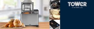 Tower T11002 Digital Bread Maker, 17 Preset Functions Including Gluten Free and Sourdough Options, Delay Timer and Keep Warm Settings, Automatic Fruit and Nut Dispenser, 1 Litre, Stainless Steel