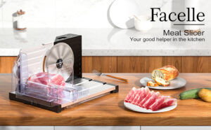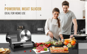 Electric Meat Slicer Machine for Home 200W, 2 Stainless Steel Blades(Smooth & Serrated), Food Slicer Easy to Clean, Bread Slicer with 0-15 mm Adjustable Thickness, Safety Switch