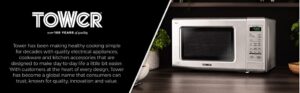 Our brand’s strength comes from its heritage – something that can’t be forged and something that allows us to continue offering highly desirable housewares products to a wide customer-base with unshakable brand loyalty. Quality, Innovation and Value. Customers’ Trusted Brand Healthy Cooking for Decades Desirable Electrical and Housewares Products Tower T24031BLU Microwave Ice Diamond Collection Packed with functionality and presented in a stylish ice diamond effect design, this digital microwave is just what you need for quick, convenient cooking. Featuring five power levels and eight auto-cook options, you can easily cook a wide range of ingredients, including pizza, soup, rice and vegetables. Its 20 litre capacity provides sufficient space to accommodate family size cooking. This microwave also includes a handy defrost function that allows you to cook a meal straight from frozen in a matter of minutes, as well as a re-heat option for leftovers. Powerful 800W for faster cooking/heating High quality glass turntable for even heat distribution 270mm Generous 20L capacity ideal for single and family homes Defrost function cooks frozen meals in minutes Digital timer for optimum cooking accuracy 6 microwave power levels to suit a variety of ingredients Pull handle door for easy access Multi-Functional Cooking With 6 power levels including a defrost function, you can cook, reheat, or even cook straight from frozen with a simple selection of the dial control. Digital Timer With a 20 litre capacity and a 60 minute digital timer, this microwave turns small dishes to family meal portions into deliciously cooked results at the accurate cooking period to suit your chosen dish. Ice Diamond Design Speckled with high quality ice diamond effect detailing in a blue colour coating, this microwave offers a visually appealing feature to stand out in your kitchen. Check Offer Price Weight: 12 kg Dimensions: 33 x 45.5 x 25.5 cm; 12.05 Kilograms Brand: Tower Colour: Blue Colour: Blue