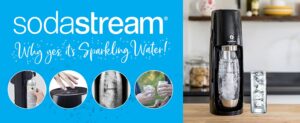 SodaStream Spirit One Touch Electric Sparkling Water Maker Machine with 1 Litre Reusable BPA Free Water Bottle for Carbonating and 60 L CO2 Gas Cylinder – Black