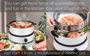 Primst Electric Hot Pot Cooker, Shabu Shabu Hot Pot, Separate Design Multifunctional Electric BBQ Grill Pot, for 2-5 People, 1350W (White)
