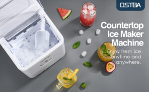 OSTBA Ice Maker Machine Counter Top, Make 26 lbs 24 Hrs,Portable Ice Cube Maker With LED Display,9 Ice Cubes Ready in 8 Minutes, 1.5L with Ice Scoop & Basket,Perfect for Home Office
