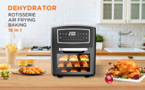 AUMATE Air Fryer Toaster Oven,18L Convection Mini Oven,1600W Large Roaster Oven,Multi Air Cooker, Countertop Oven,Rotisserie Oven with Dehydrator,Oilless Electric Oven Knob Control, 4 Accessories