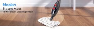 Moolan steam mop, 12-in-1 Multifunction Steam Cleaner with Dual-sided Dirt Grip Pads for Tile and Grout, Hardwood Floors, Kills 99.9% of Bacteria Without Cleaning Chemicals, Handheld steame