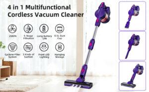 CEFNOON XCQ01, 24Kpa Powerful Suction Stick Vacuum Cleaner 265W with Headlights for Home, Floor,Carpet, Car, Pet Hair, Purple, Rechargeable, 265 W