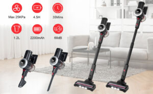 HCBOO Cordless Vacuum Cleaner, 4 in 1 Upright Handheld Stick Vacuum Cleaner, 25000Pa Powerful Suction, up to 35 Mins, HEPA filter, Compact Cyclonic Bagless Rechargeable Vacuum Cleaner, Black