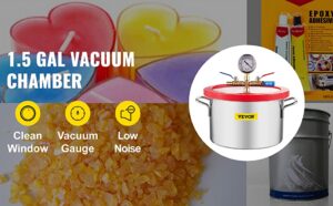 Mophorn 1.5 Gallon Vacuum Chamber Glass Lid Stainless Steel Vacuum Degassing Chamber Glass Lid Stainless Steel Degassing Chamber Silicones for Gas Extraction and Protect Food