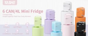 YASHE Mini Fridge, 4 Liter/6 Cans Small Fridge for Office, AC/DC Thermoelectric Cooler and Warmer Mini Fridge for Drink, Dorm, Car, Black