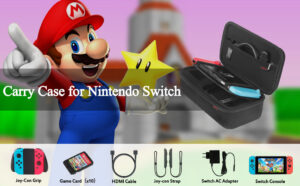 Bestico Case for Nintendo Switch and Switch OLED Model- Black Travel Carry Case for Nintendo Switch Console, AC Adapter, HDMI Cable, Joy-con Grip, Joy-con Strap, with 10 Games Cartridge Holders