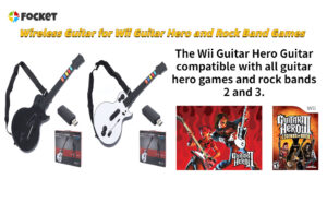 Guitar Controller, 5 Button USB Detachable Guitar Hero Controller with Strap, Plug and Play Remote Control 2.4G Wireless Guitar Game Controller for Wii Guitar Hero for PS3 for Rock Band Game(White)