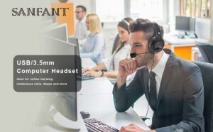 USB Headset/3.5mm PC Headphones with Microphone Noise Cancelling, Flexible Over-Ear Earcups and Rotatable Boom Mic, Wired Computer Headset, Comfort Office Headset for Laptop/Call Center/Cell Phone