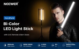 NEEWER CL124 Handheld LED Video Light Stick with Metal Barndoor,Portable Dimmable Bi-Color 3200K~5600K 1500Lux CRI 97+ 2.4GHz Remote Control/Built-in 2500mAh Battery/LCD Display Photography Light Ki