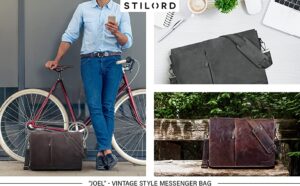 STILORD ‘Joel’ Leather Messenger Bag Shoulder Cross-Body Bag Notebooks MacBooks 15.6 inches Real Cow Hide Leather, Colour:Espresso Brow