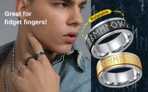 ChainsPro Men Rings,Viking Jewellery for Men,Runes/Celtic/Chain Spinner Ring for Fidget Anxiety, Size O-Z+3 (Gift Wrapped)