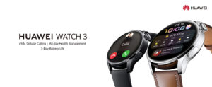 HUAWEI WATCH 3, Connected GPS Smartwatch with Sp02 and All-Day Health Monitoring, 14 Days Battery Life – Gray Blue Nylon Strap [Exclusive to Amazon]