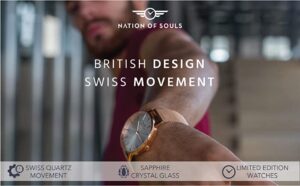 Nation of Souls Limited Edition Eclipse | British Designer Watches for Men | Brushed Jet Black Mens Watch Gunmetal Face Dial Water Resistant Swiss Quartz
