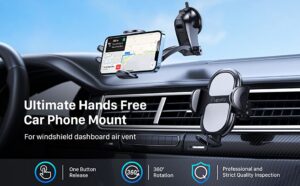 Amazon Brand-Eono Car Phone Holder Air Vent, Universal Air Vent Car Phone Mount 360° Rotation, One-button Release Mobile Phone Cradle with Adjustable Clip Compatible for iPhone,Galaxy, Huawei etc.