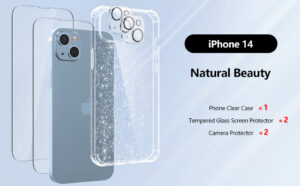 YIRSUR Glitter Case Compatible with iPhone 14 with 2 Pack Screen Protector and 2 Pack Camera Lens Protector, Glitter Air Cushion Soft TPU Bumper Anti-Scratch Shockproof Sparkly Cover for iPhone 14