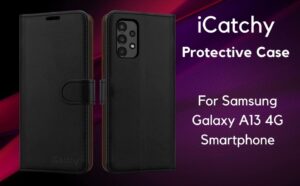 iCatchy for Samsung Galaxy A13 4G Case Leather Wallet Book Flip Folio Stand View Cover Pouch for Samsung Galaxy A13 4G (Black)
