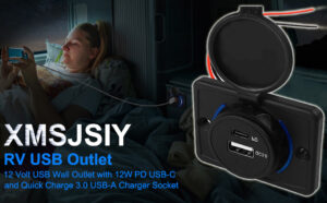 RV USB Outlet, 12 Volt USB Wall Outlet with 18W PD USB-C and Quick Charge 3.0 USB-A Charger Socket, Dual Port 12V-24V Quick Car Charger Panel Type C USB Car Charger Socket Power Outlet with Cap