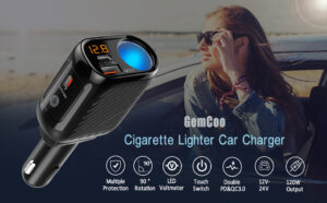 USB C Car Charger, 120W QC3.0 & Dual PD 4 in 1 USB Charger with Voltage Display & Touch Switch 12V/24V Cigarette Lighter Splitter Socket Adapter for iPhone, Smart phone, Tablet, GPS, Dash cam and More